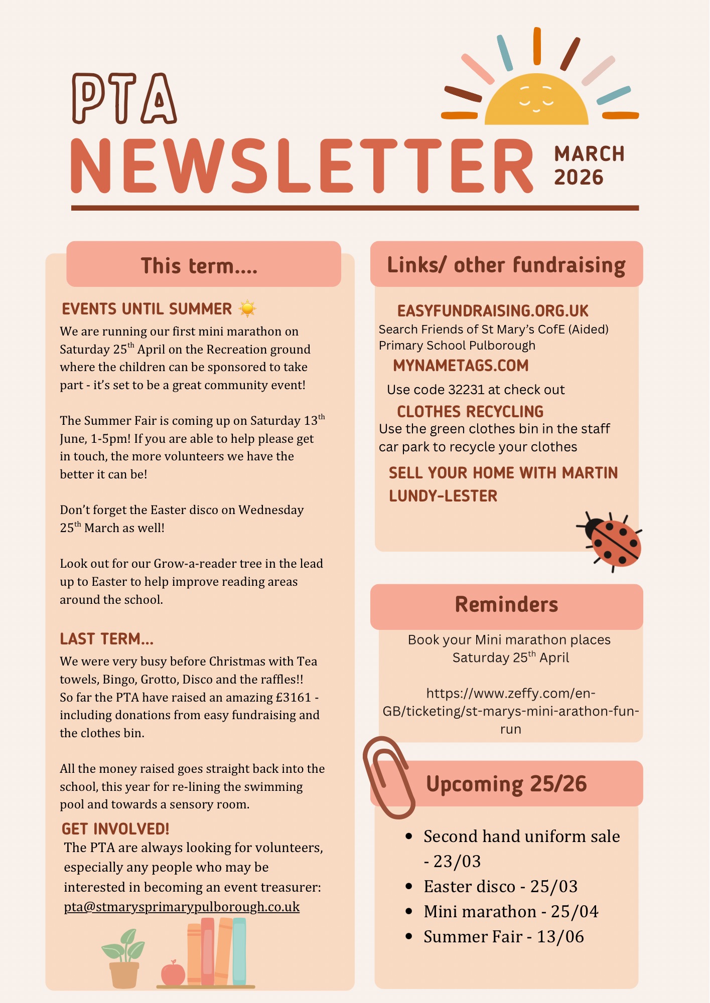 Thank you to those parents who helped at events during 2024-2025. If you would like to volunteer to help, please email the PTA chair on pta@stmarysprimarypulborough.co.uk.